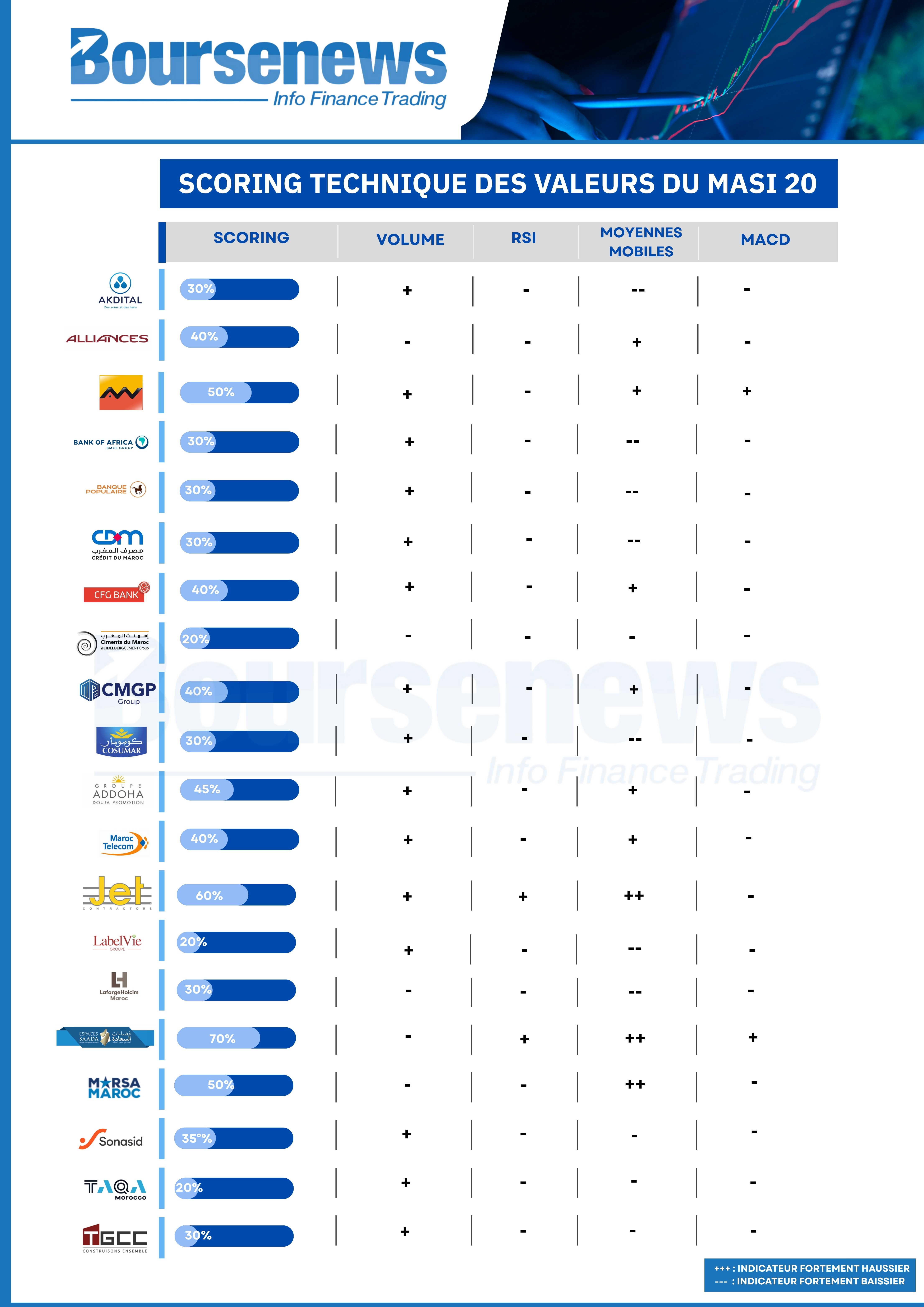 Chaque semaine, découvrez notre Flash Momentum : un regard clair, rapide et efficace sur l’orientation technique des titres du MASI 20.