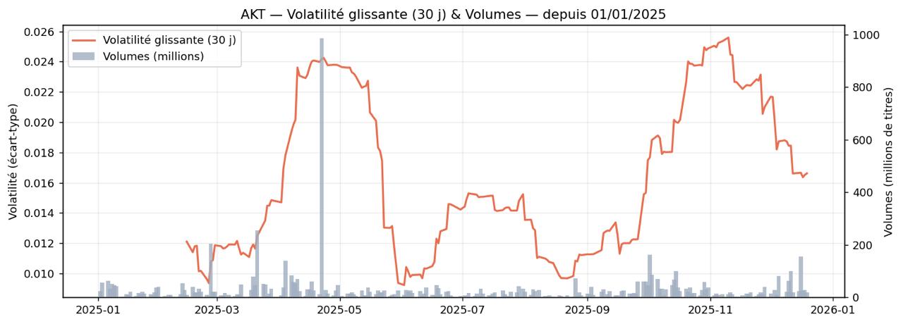 Au-delà du mouvement lui-même, l’intérêt se situe dans la dynamique qui l’a accompagné. L’évolution du titre offre un cas d’école sur la manière dont le marché intègre le risque en période de tension, ainsi que sur le temps nécessaire au retour à une volatilité plus normalisée.