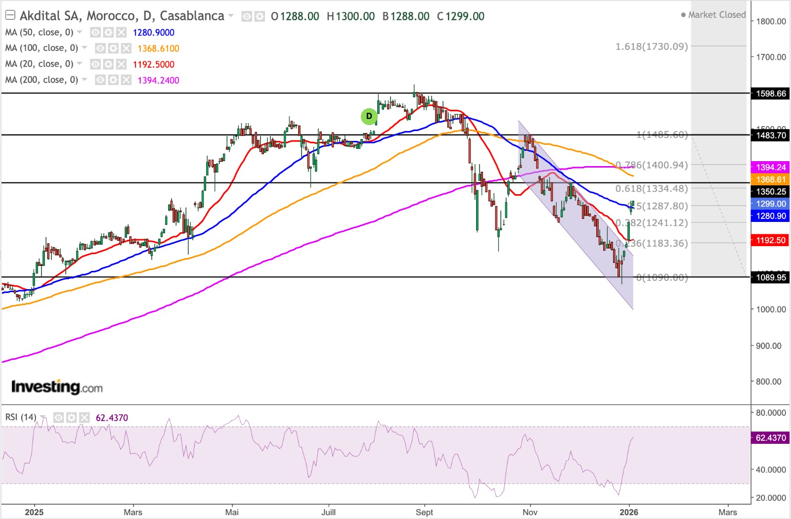Par ailleurs, depuis la fin décembre, le titre a amorcé un mouvement de reprise technique significatif. Après avoir inscrit un point bas autour de 1 090 dirhams, l’action a récupéré plus de 50 % de sa dernière jambe baissière, effaçant une partie du repli enregistré à l’automne. Cette reprise s’est accompagnée d’un redressement des indicateurs de momentum et d’un retour progressif des acheteurs qui suggère tout autant une phase de normalisation après l’excès de volatilité observé précédemment.