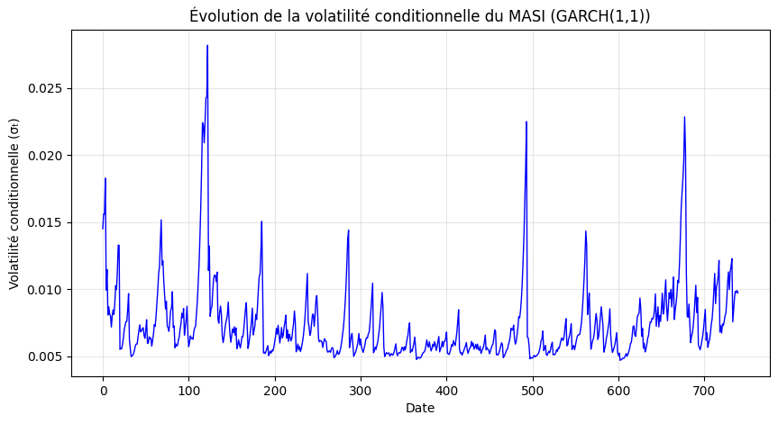 Le modèle GARCH(1,1), proposé par Bollerslev (1986), généralise le modèle ARCH en introduisant une dépendance de la variance conditionnelle aux chocs et à la volatilité passés.